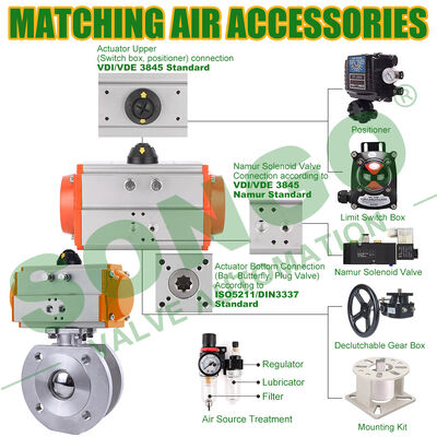 ● صمام الملف اللولبي Namur 3/2 طريقة (لمشغل الإرجاع الزنبركي) ● 5/2 طريقة صمام الملف اللولبي Namur (لمشغل مزدوج المفعول) منظم مرشح الهواء أسفل المشغل ISO5211/DIN3337 |