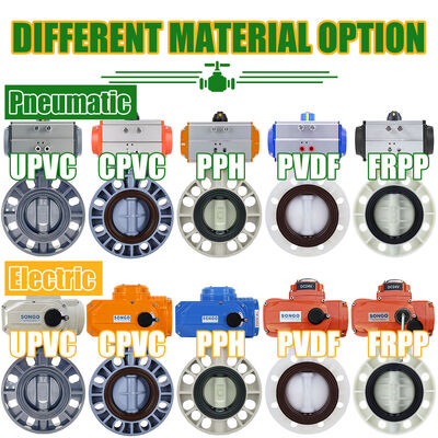 04)The pneumatic UPVC plastic butterfly valve offers multiple material options(FRPP PPH CPVC PVDF UPVC )for diverse media, demonstrating strong corrosion resistance. Its compact size ensures broad applicability across various pipeline systems, making it widely versatile.