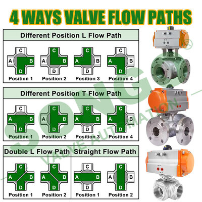 Flow Path Selection Of Pneumatic 4 Ways Ball Valve: