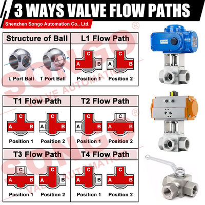 3 Ways Ball Valve Flow Paths: