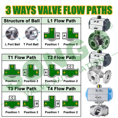 Flow Path Selection Of Pneumatic 3 Ways Ball Valve: